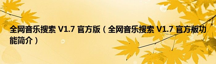 全网音乐搜索 V1.7 官方版(全网音乐搜索 V1.7 官方版功能简介)