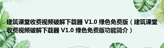 建筑课堂收费视频破解下载器 V1.0 绿色免费版(建筑课堂收费视频破解下载器 V1.0 绿色免费版功能简介)