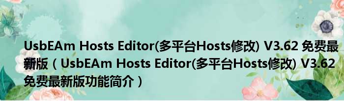 UsbEAm Hosts Editor(多平台Hosts修改) V3.62 免费最新版(UsbEAm Hosts Editor(多平台Hosts修改) V3.62 免费最新版功能简介)
