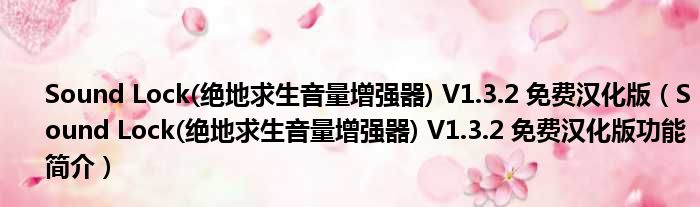 Sound Lock(绝地求生音量增强器) V1.3.2 免费汉化版(Sound Lock(绝地求生音量增强器) V1.3.2 免费汉化版功能简介)