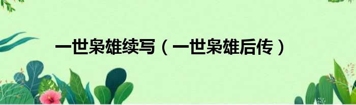 导读 大家好,今天小六子来为大家解答以下的问题,关于一世枭雄续写,一世枭雄后传这个很多人还不知道,现在让我们一起来看看吧!1、没写完。2、