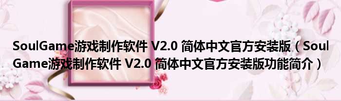 SoulGame游戏制作软件 V2.0 简体中文官方安装版(SoulGame游戏制作软件 V2.0 简体中文官方安装版功能简介)