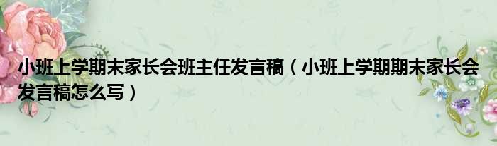 导读 大家好,今天小六子来为大家解答以下的问题,关于小班上学期末家长会班主任发言稿,小班上学期期末家长会发言稿怎么写这个很多人还不知道,