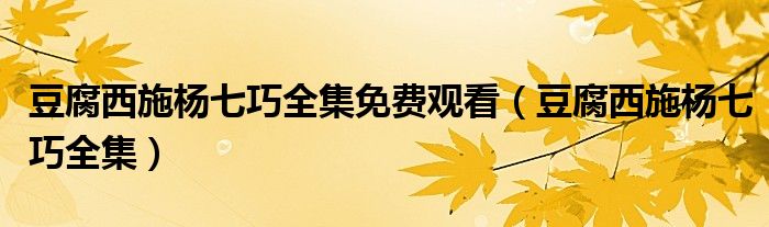 导读 大家好,今天小六子来为大家解答以下的问题,关于豆腐西施杨七巧全集免费观看,豆腐西施杨七巧全集这个很多人还不知道,现在让我们一起来看
