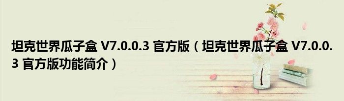 坦克世界瓜子盒 V7.0.0.3 官方版(坦克世界瓜子盒 V7.0.0.3 官方版功能简介)