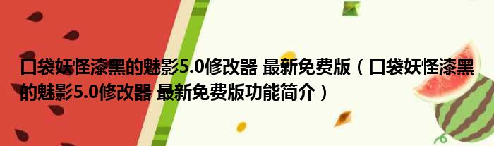 导读 大家好,关于口袋妖怪漆黑的魅影5 0修改器 最新免费版,口袋妖怪漆黑的魅影5 0修改器 最新免费版功能简介这个很多人还不知道,小勒来为大家