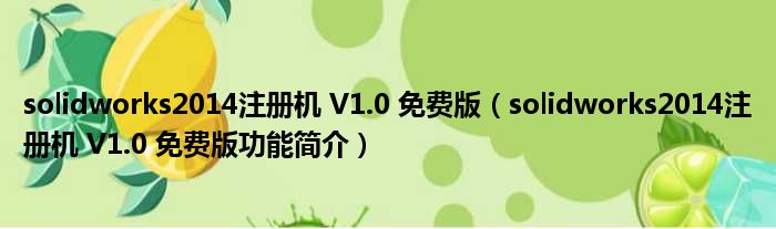 solidworks2014注册机 V1.0 免费版(solidworks2014注册机 V1.0 免费版功能简介)