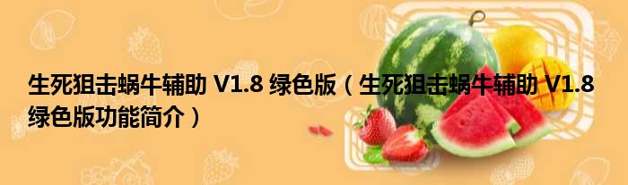 导读 大家好,关于生死狙击蜗牛辅助 V1 8 绿色版,生死狙击蜗牛辅助 V1 8 绿色版功能简介这个很多人还不知道,小勒来为大家解答以上的问题,现