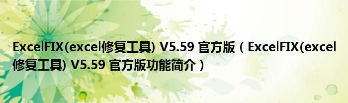 ExcelFIX(excel修复工具) V5.59 官方版(ExcelFIX(excel修复工具) V5.59 官方版功能简介)