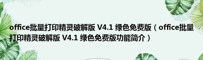 office批量打印精灵破解版 V4.1 绿色免费版(office批量打印精灵破解版 V4.1 绿色免费版功能简介)