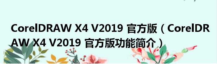 CorelDRAW X4 V2019 官方版(CorelDRAW X4 V2019 官方版功能简介)