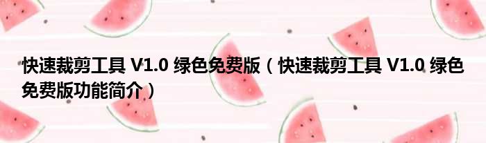 快速裁剪工具 V1.0 绿色免费版(快速裁剪工具 V1.0 绿色免费版功能简介)
