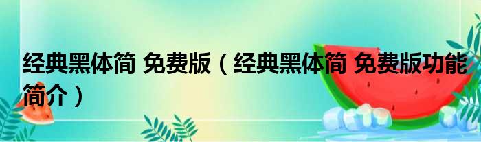 经典黑体简 免费版(经典黑体简 免费版功能简介)