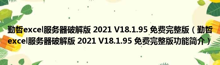 大家好,关于勤哲excel服务器破解版 2021 V18.1.95 免费完整版,勤哲excel服务器破解版 2021 V18.1.95 免费完整版功能简介这个很多人还不知道,小勒来为大家解答以上的问题,现在让我们一起来看看吧!
