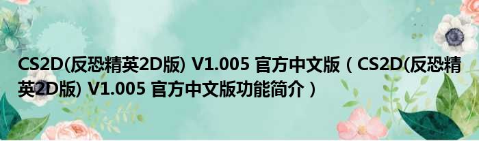 CS2D(反恐精英2D版) V1.005 官方中文版(CS2D(反恐精英2D版) V1.005 官方中文版功能简介)