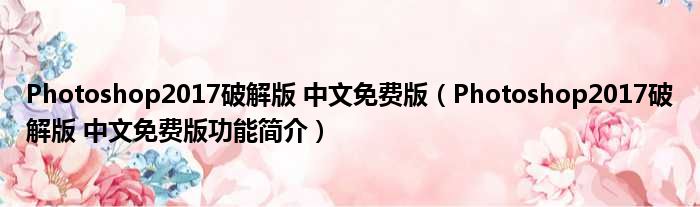 Photoshop2017破解版 中文免费版(Photoshop2017破解版 中文免费版功能简介)