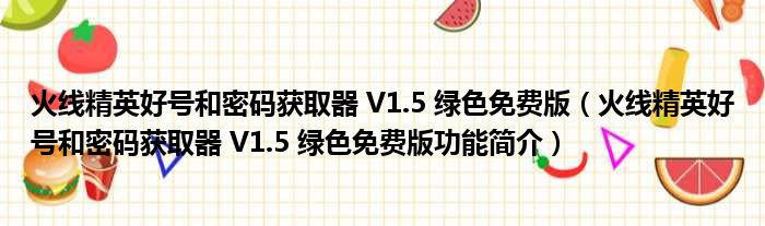 火线精英好号和密码获取器 V1.5 绿色免费版(火线精英好号和密码获取器 V1.5 绿色免费版功能简介)