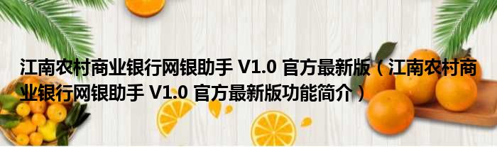 江南农村商业银行网银助手 V1.0 官方最新版(江南农村商业银行网银助手 V1.0 官方最新版功能简介)