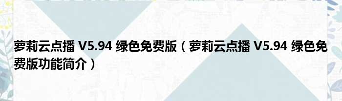 萝莉云点播 V5.94 绿色免费版(萝莉云点播 V5.94 绿色免费版功能简介)