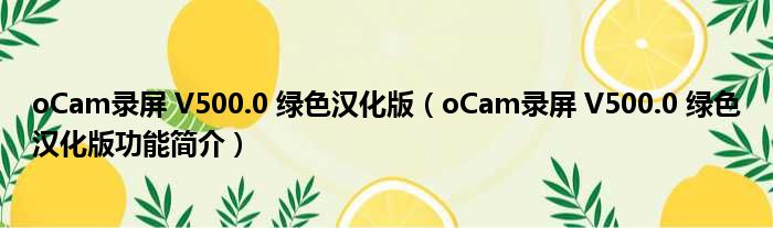 oCam录屏 V500.0 绿色汉化版(oCam录屏 V500.0 绿色汉化版功能简介)