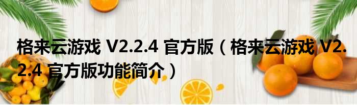 格来云游戏 V2.2.4 官方版(格来云游戏 V2.2.4 官方版功能简介)