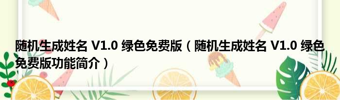 随机生成姓名 V1.0 绿色免费版(随机生成姓名 V1.0 绿色免费版功能简介)
