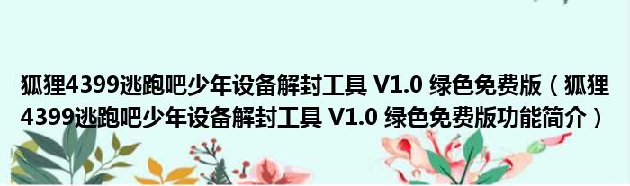 狐狸4399逃跑吧少年设备解封工具 V1.0 绿色免费版(狐狸4399逃跑吧少年设备解封工具 V1.0 绿色免费版功能简介)