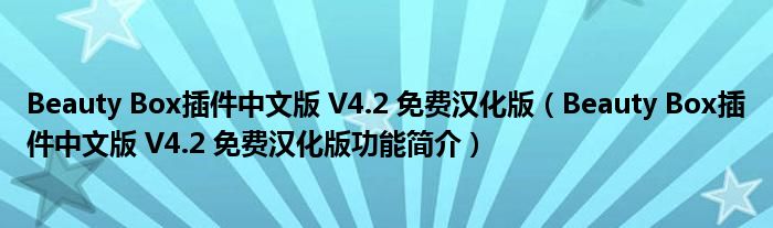 Beauty Box插件中文版 V4.2 免费汉化版(Beauty Box插件中文版 V4.2 免费汉化版功能简介)