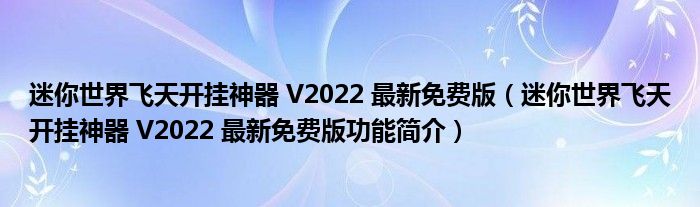 导读 大家好,关于迷你世界飞天开挂神器 V2022 最新免费版,迷你世界飞天开挂神器 V2022 最新免费版功能简介这个很多人还不知道,小勒来为大家