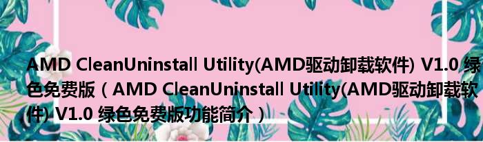 AMD CleanUninstall Utility(AMD驱动卸载软件) V1.0 绿色免费版(AMD CleanUninstall Utility(AMD驱动卸载软件) V1.0 绿色免费版功能简介)