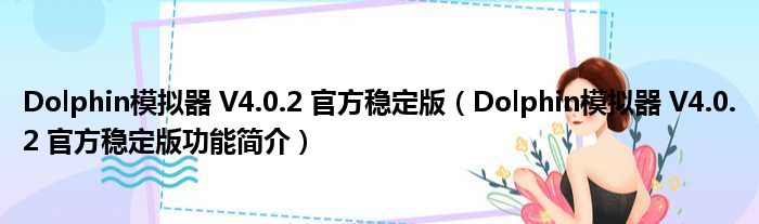 Dolphin模拟器 V4.0.2 官方稳定版(Dolphin模拟器 V4.0.2 官方稳定版功能简介)