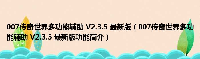 007传奇世界多功能辅助 V2.3.5 最新版(007传奇世界多功能辅助 V2.3.5 最新版功能简介)