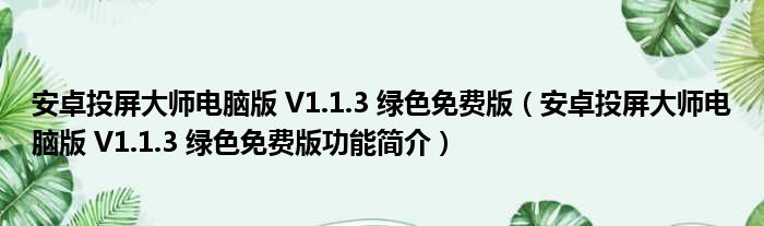 安卓投屏大师电脑版 V1.1.3 绿色免费版(安卓投屏大师电脑版 V1.1.3 绿色免费版功能简介)