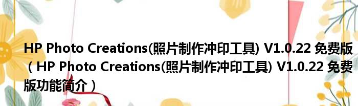 导读 大家好,关于HP Photo Creations(照片制作冲印工具) V1 0 22 免费版,HP Photo Creations(照片制作冲印工具) V1 0 22 免费版功能简