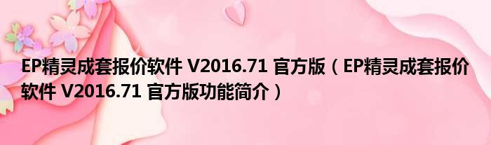 EP精灵成套报价软件 V2016.71 官方版(EP精灵成套报价软件 V2016.71 官方版功能简介)