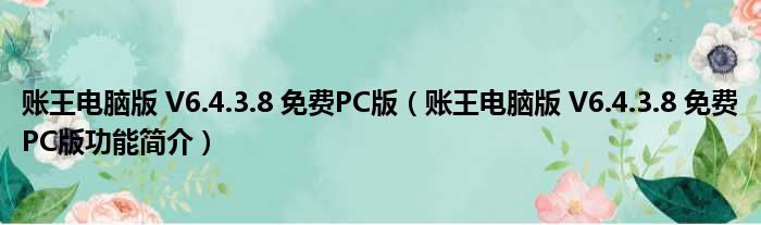 导读 大家好,关于账王电脑版 V6 4 3 8 免费PC版,账王电脑版 V6 4 3 8 免费PC版功能简介这个很多人还不知道,小勒来为大家解答以上的问题,现