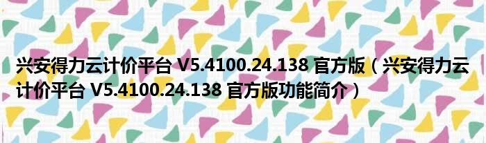 导读 大家好,关于兴安得力云计价平台 V5 4100 24 138 官方版,兴安得力云计价平台 V5 4100 24 138 官方版功能简介这个很多人还不知道,小勒来