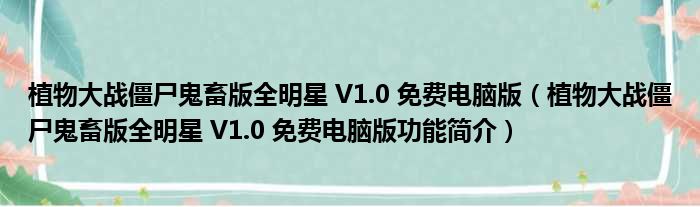 植物大战僵尸鬼畜版全明星 V1.0 免费电脑版(植物大战僵尸鬼畜版全明星 V1.0 免费电脑版功能简介)