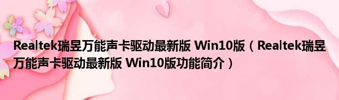 Realtek瑞昱万能声卡驱动最新版 Win10版(Realtek瑞昱万能声卡驱动最新版 Win10版功能简介)