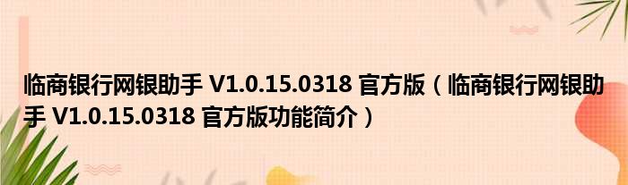 临商银行网银助手 V1.0.15.0318 官方版(临商银行网银助手 V1.0.15.0318 官方版功能简介)