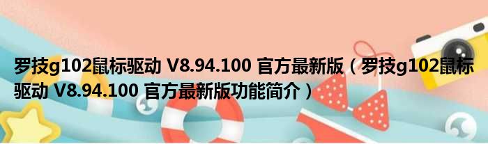 罗技g102鼠标驱动 V8.94.100 官方最新版(罗技g102鼠标驱动 V8.94.100 官方最新版功能简介)