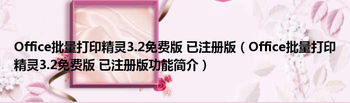 Office批量打印精灵3.2免费版 已注册版(Office批量打印精灵3.2免费版 已注册版功能简介)