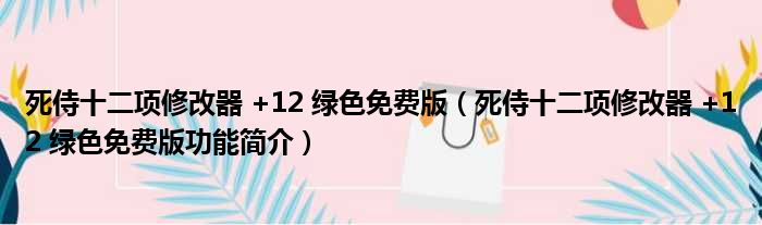 导读 大家好,关于死侍十二项修改器 +12 绿色免费版,死侍十二项修改器 +12 绿色免费版功能简介这个很多人还不知道,小勒来为大家解答以上的问