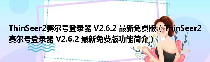 导读 大家好,关于ThinSeer2赛尔号登录器 V2 6 2 最新免费版,ThinSeer2赛尔号登录器 V2 6 2 最新免费版功能简介这个很多人还不知道,小勒来为