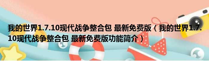 导读 大家好,关于我的世界1 7 10现代战争整合包 最新免费版,我的世界1 7 10现代战争整合包 最新免费版功能简介这个很多人还不知道,小勒来为大