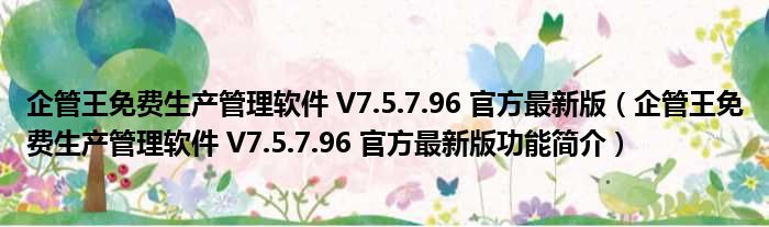 导读 大家好,关于企管王免费生产管理软件 V7 5 7 96 官方最新版,企管王免费生产管理软件 V7 5 7 96 官方最新版功能简介这个很多人还不知道,