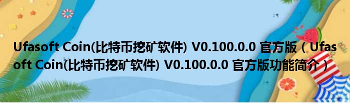 Ufasoft Coin(比特币挖矿软件) V0.100.0.0 官方版(Ufasoft Coin(比特币挖矿软件) V0.100.0.0 官方版功能简介)