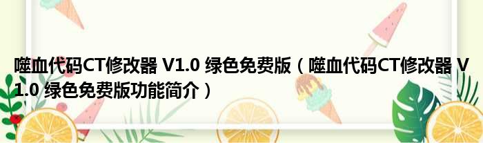 噬血代码CT修改器 V1.0 绿色免费版(噬血代码CT修改器 V1.0 绿色免费版功能简介)