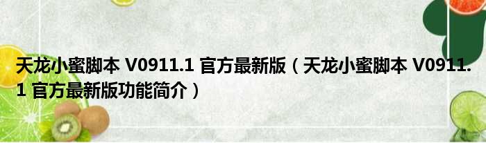 天龙小蜜脚本 V0911.1 官方最新版(天龙小蜜脚本 V0911.1 官方最新版功能简介)