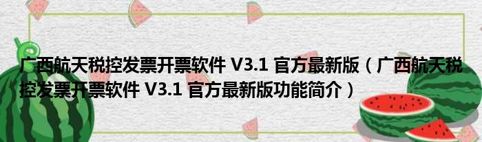 广西航天税控发票开票软件 V3.1 官方最新版(广西航天税控发票开票软件 V3.1 官方最新版功能简介)
